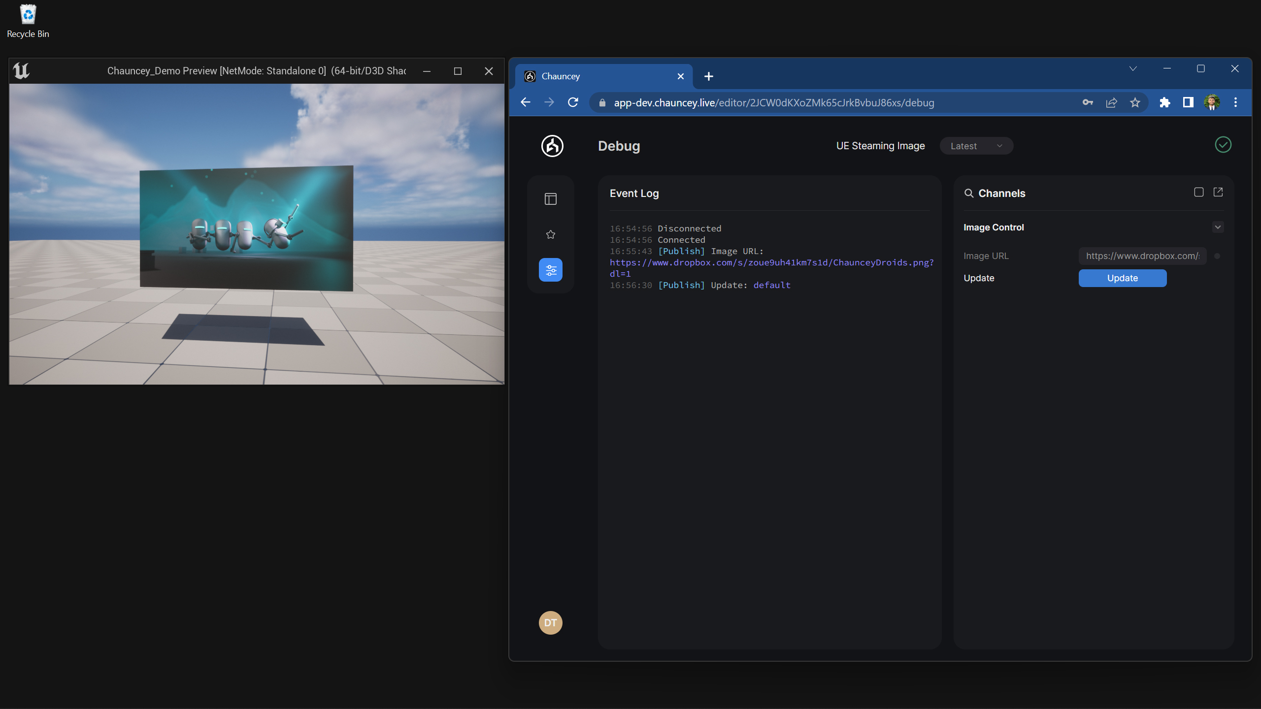 In this tutorial we'll cover how to load images from a hosting service such as Dropbox or Google Drive into your Unreal Engine project after it's been packaged. The tutorial is broken down into 3 steps. First well cover how to set up a blueprint and material that can download and display a web hosted image in your levels. Then we'll cover how to use Dropbox or Google Drive to host your image files and generate URL links for each image file. Last, we'll connect Chauncey to your Unreal Engine project allow the image URLs to be sent form the Chauncey Debug (Web Control Interface).
